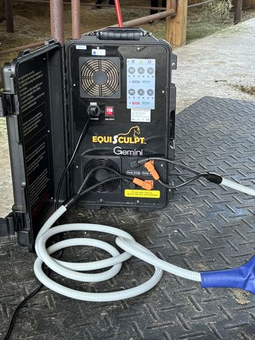The Gemini allows hands free operation with the remote control. Use two attachments on a horse, person, dog, or work on two different animals/people at the same time. The Gemini is priced at $4,995 Includes 4 attachments and free shipping.